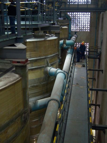 Ø The Chifeng NFC Kumba Hongye Zinc Smelting Project includes four phases with total production capacity of 230,000 t/a zinc ingot, 2,400 t/a electrolytic copper and 350,000 t/a sulfuric acid. The project production capacity takes a lead in the industry in China and the equipment is also advanced in the same scale project in China. At the same time, the project also creates a precedent in China of recovering copper from purification residue to obtain cathode copper, as well as a new profit growth point for zinc smelting enterprises. In addition, the process recovers silver from leached residue with floatation to obtain silver concentrate and recovers zinc through extraction from solution after flotation treatment, which also increased recovery of valuable metals. ENFI undertook all of the design and adopted the patent intellectual property technology of hot acid leaching -jarosite process, which is jointly owned by ENFI and Chifeng NFC Kumba Hongye Zinc Corporation. The technology is innovative in China and internationally advanced. After over 20 years, the practical production proved that the technology is sophisticated and reliable, featuring stable production, low operating costs, high rate of first class products and good economic returns. The technical and economic indicators of production management of the enterprise are among the international and domestic advanced level. The Phase IV works won the first prize of 2013 Outstanding Engineering Design Award (provincial and ministerial level), and the new technology for copper recovery from electrolyte purification residue of zinc hydrometallurgical process won a second prize in 2012 China Nonferrous Metals Industry Science and Technology Award.