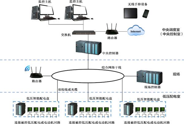 (4) Intelligent power distribution systemIntelligent low voltage power distribution system can monitor, collect and record the open-close state, voltage, current, power factor, kilowatt-hours, frequency and other parameters of the circuit in a real-time manner, and allow automatic prompting, alarming and tripping according to the set threshold value, thus protecting the distribution circuit, transformer and motor etc. Digital control is adopted for the whole system, which is characterized by high reliability, low cost, easy maintenance and expansion etc., and reaches unattended operation level.The intelligent power distribution system developed by ENFI fully considers the demand of enterprise production for power distribution and control, realizes power distribution monitoring and logic control as one, simplifies the structure of the control system, improves enterprise automation level, and reduces the number of personnel on site; power supply and distribution data can be directly used by the control system and uploaded to the management and control system, thus providing a solid foundation for energy management and digital mining in power supply and distribution.